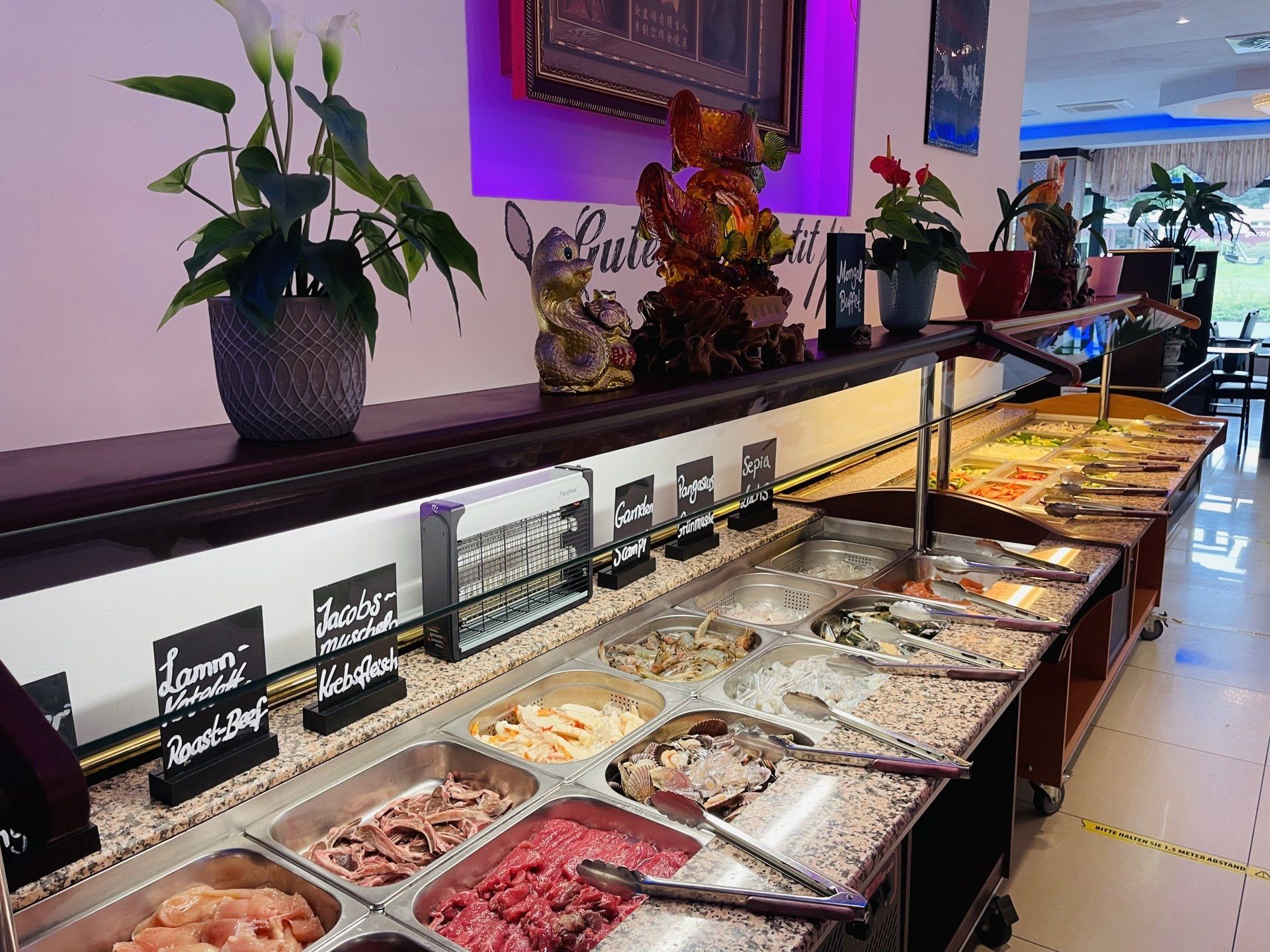 Wir bieten Ihnen unseren BUFFET mit riesiger Auswahl an Speisepezialiäten Asiens - immer frisch für Sie zubereitet !